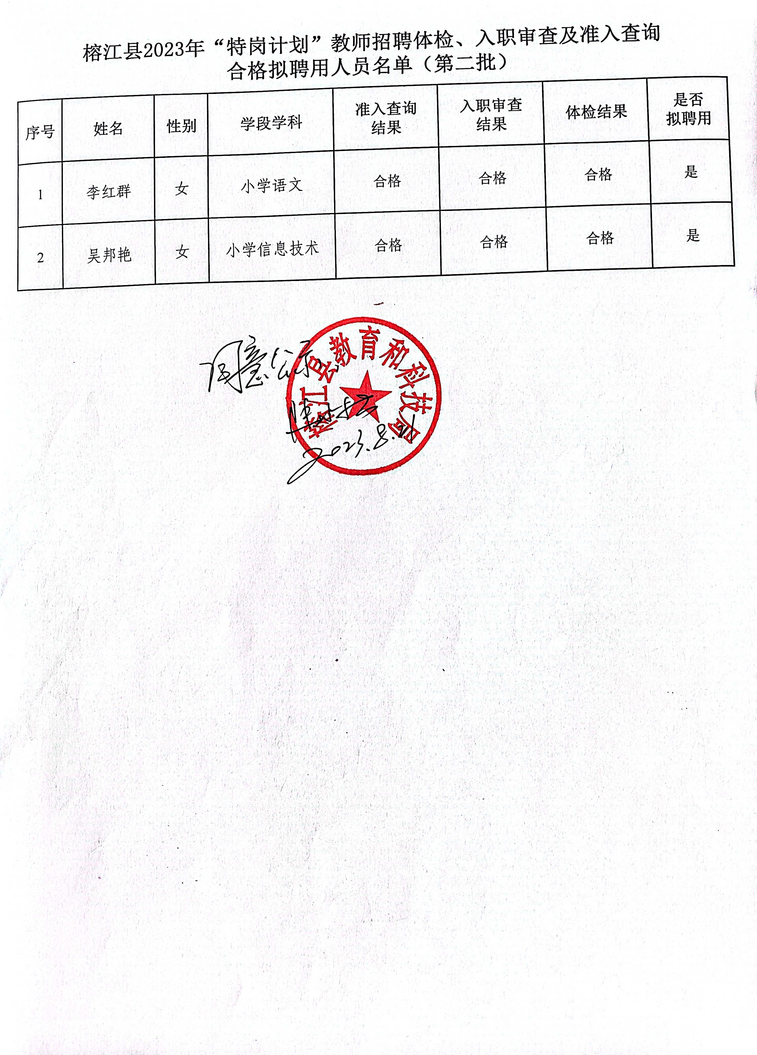 原文標(biāo)題:榕江縣2023年“特崗計(jì)劃“教師招聘體檢、入職審查及準(zhǔn)入查詢(xún)合格擬聘用人員名單公示(第二批2人)